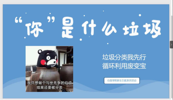 2020年11月10日晚,为响应学校新生引航工作的号召,心理学院组织开展主题班会,班会由辅导员盛楚云主持,围绕“我与社会主义核心价值观”“学院奖学金评定规则和管理规定”以及“垃圾分类宣传教育”三个方面进行。