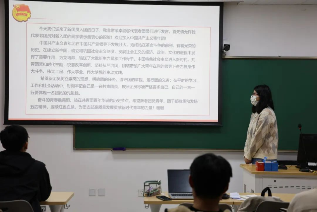 辅导员李杨老师也提出了对新老团员的希望,希望同学们能对过去的一学年总结收获,反思不足,在新的学期里,树立新目标,迎接新挑战,不断督促自己努力成为不负韶华、可堪大任的时代新人。