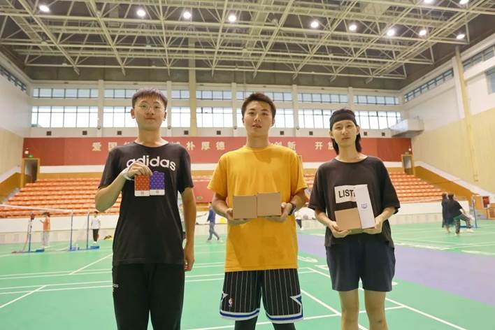 比赛的最后,辅导员李杨老师向各项比赛前三名的同学颁发了奖品,所有参与比赛的同学也得到了北语纪念明信片,大家一起在体育馆合影留念。