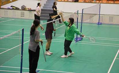 首先开始的是男单和女单,同学和老师全心投入比赛,既紧张又激动。各位健儿们势均力敌,羽毛球在空中飞来飞去,赛况十分激烈。有的同学抓住机会,势如破竹般率先破局,将焦灼的比赛推入高潮。最终,李良赐和赖俊琪同学拔得头筹,夺得了男单和女单的冠军。