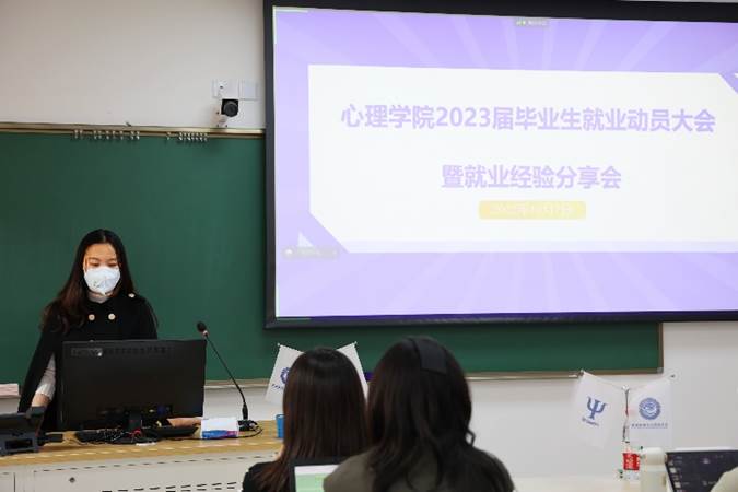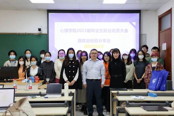 2022年10月7日下午,心理学院举办2023届毕业生就业动员会暨就业经验分享会。会议由学院辅导员李杨老师主持,2021、2022、2023级研究生参加了此次会议。考虑到疫情影响,会议通过线下与线上两种形式同步进行,主要分为就业形势介绍、申博经验分享和就业经验交流三个板块