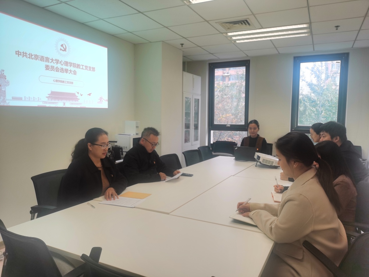 根据《中国共产党章程》《中国共产党普通高等学校基层组织工作条例》和《北京语言大学基层单位党组织换届选举工作实施细则》,心理学院于10月28日召开教工党员大会,成立中共北京语言大学心理学院教工党支部,并选举产生第一届委员会。会议由学院党组织书记王旭主持,学院全体教工党员参加。