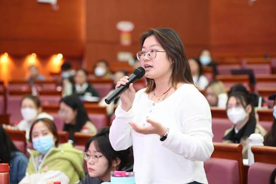 互动交流环节,北京大学对外汉语教育学院院长赵杨教授就间接言语的特性是否会影响两组被试的表现与张秀平老师进行了探讨。北京语言大学心理学院直博生吴宇婷同学就实验材料的编制与筛选与张秀平老师进行了交流。