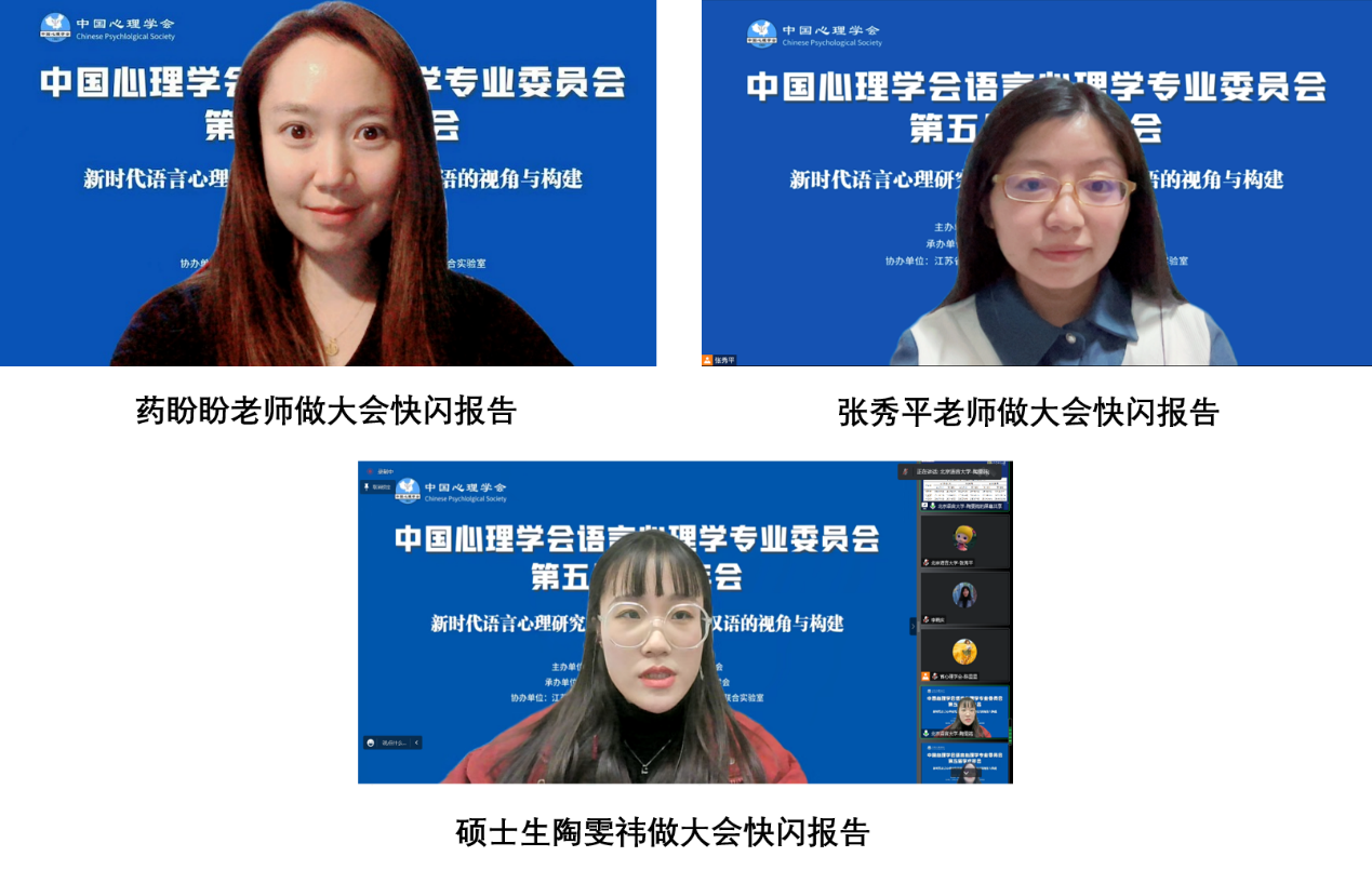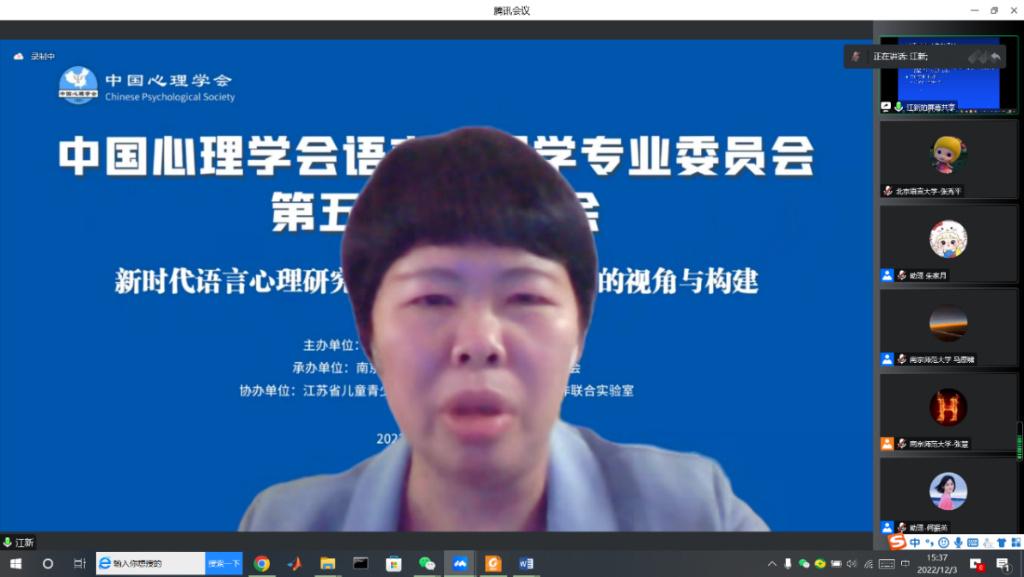 2022年12月3日-4日,由中国心理学会语言心理学专业委员会主办,南京师范大学心理学院、江苏省心理学会承办的“中国心理学会语言心理学专业委员会第五届学术年会”在云端顺利举行。此次会议的主题是“新时代语言心理研究的前沿与挑战:汉语的视角与构建”。会议邀请了语言心理学领域的19位知名专家做大会报告,9名青年学者做最佳论文报告,47名学者做快闪报告。9200余人次在线上观看直播、参加会议。心理学院六名师生应邀出席会议并在会上做了学术报告。