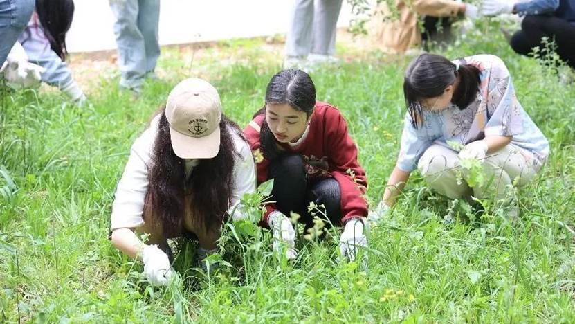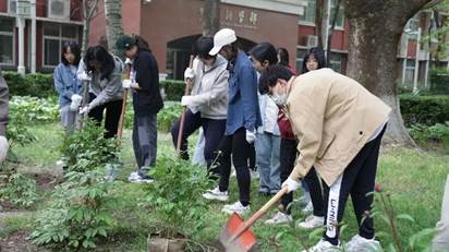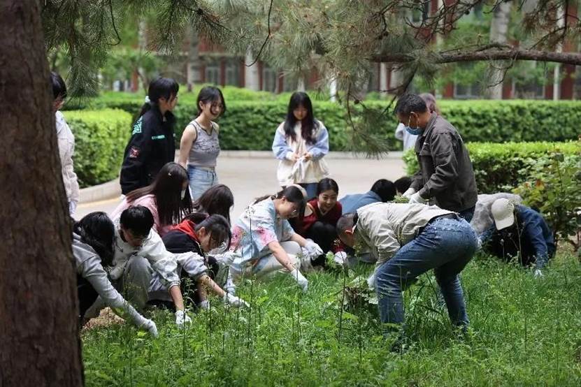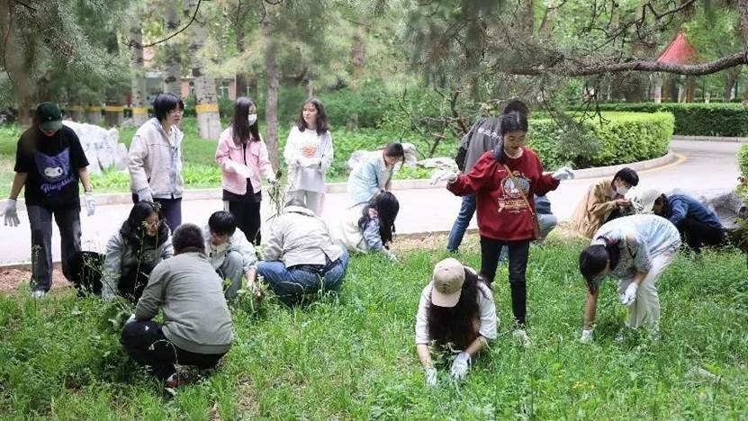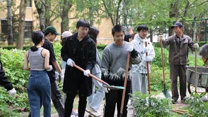 栽种结束后,同学们跟随物业服务中心的师傅前往教一楼东侧清理杂草。对杂草进行清理不仅可以促进周边树木花草的生长,在物业师傅对土地进行翻种养护后还能为以后的种植活动做好铺垫。相信在一位位北语师生的辛勤劳作下,我们的校园会愈发美丽盎然!