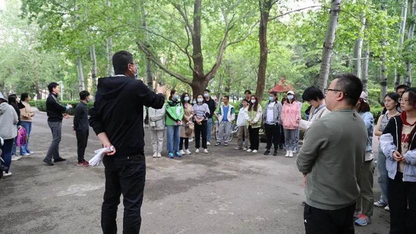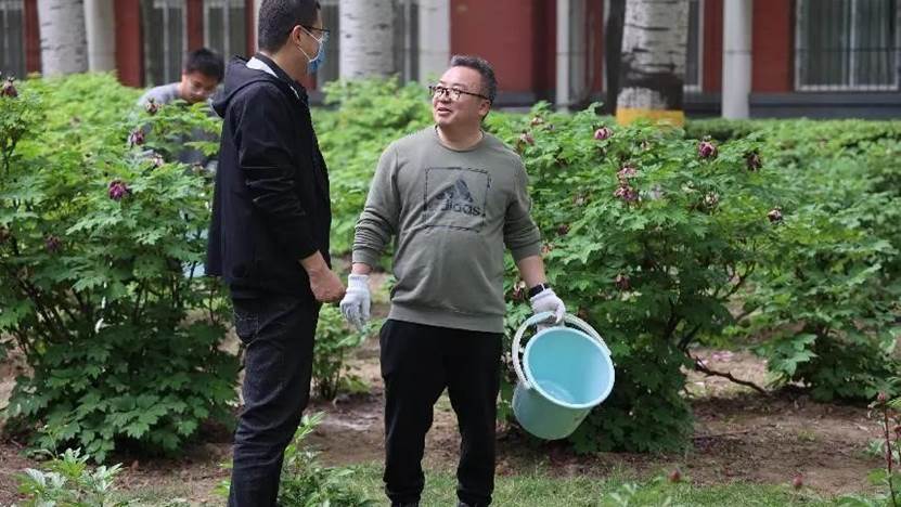 活动开始前,同学们集合在教五楼东侧,物业服务中心老师向大家介绍了今天的活动内容和注意事项,随后同学们分组分别前往不同的劳动地点开始活动。心理学院本科生同学们在王旭书记的带领下前往教五楼东侧的草地种植牡丹花,研究生同学们则前往学校南门西侧种植法桐树。