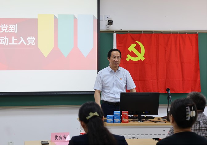 黄益方副校长从当前个别党员存在的“党员意识不强,个人利益优先,放松自我要求”问题入手,深入分析了问题产生的原因,并指出了解决问题的方法:不仅要在组织上入党,更要在思想上入党,在行动上入党。黄益方副校长从“坚定理想信念是根本、加强理论学习是基础、端正入党动机是关键、时时自省自律是保障”四个方面阐述了如何在思想上入党这一问题;并对学院全体党员同志提出了“在行动上入党”的明确要求:牢记习近平总书记对新时代青年的嘱托,厚植爱国情怀、锤炼高尚品格、练就过硬本领、弘扬奋斗精神、发挥表率作用。在党课中,黄益方副校长还结合自己的求学成长经历、读书深造经历和多部门工作经历,向大家生动地讲述了如何成为一名“平常时候看得出来、关键时刻站得出来、危机关头豁得出来”的共产党员,鼓励大家谨遵“德行言语,敦睦天下”的校训精神,努力成为堪当民族复兴大任的时代新人。