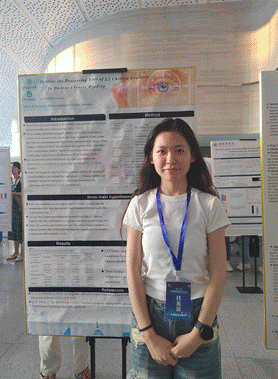 龚伶俐同学(导师为江新教授)应邀在大会上用英语做了题为“The Influence of Spaces Between Words on Chinese Pinyin Text Reading: Evidence From Eye Movements”的报告。该项研究采用眼动追踪技术,探讨词间和字间空格对汉语母语者和第二语言学习者加工拼音文本的影响,研究发现汉语母语者和不同母语背景二语学习者空格效应的差异,该发现增进了人们对拼音文本加工机制的理解和认识。报告引发了在场专家学者的积极提问和热烈讨论。