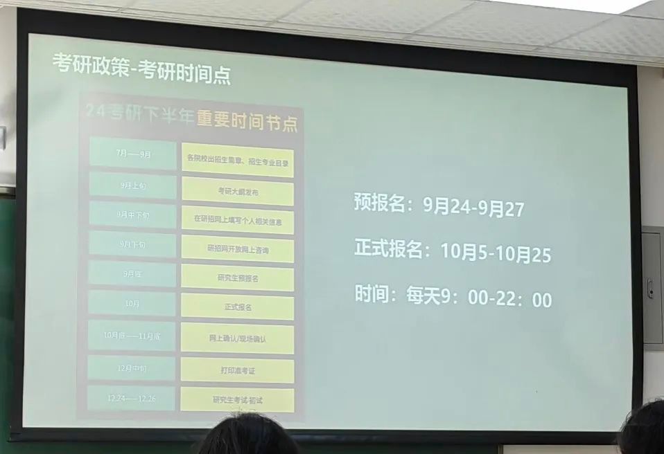有关考研政策的内容,高龙明讲师则着重介绍了考研时间点,包括准备和报名的重要时间节点和具体科目考试所需时间。不仅如此,他还提醒大家关注考研的优待政策,并且提供了一个高效实用的考研上岸公式。