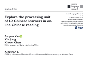 Yao, P., Jiang, X., Chen, X., & Li, X. (2023). Explore the processing unit of L2 Chinese learners in on-line Chinese reading. Second Language Research, 0(0).https://doi.org/10.1177/02676583231202606