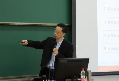 在讲座中,雷教授首先介绍了互联网时代的基本背景,随后从网络空间的八个特征入手,生动有趣地向大家介绍了如今网络空间的心理特性。接着,雷教授详细讨论了“自拍照”的历史渊源。基于这些研究背景,雷教授提出了五个研究问题以及他的团队近期完成的5项研究。在严谨的学术研究介绍之后,雷教授用平易近人、风趣幽默的语言从进化网络心理学视角对于研究结果进行了分析探讨,引发了同学们的热烈反响。