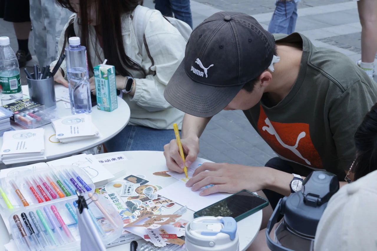 活动引来了许多老师和同学的驻足观看,并纷纷参与到活动中。他们用心、用情、用五颜六色的彩笔,书写下对未来的期待、对亲友的祝福、对同学的鼓励。大家写下的每张精美的明信片都被我们妥善地保管,并由心理学院团总支工作人员寄送到收信人手中,将祝福传递下去。