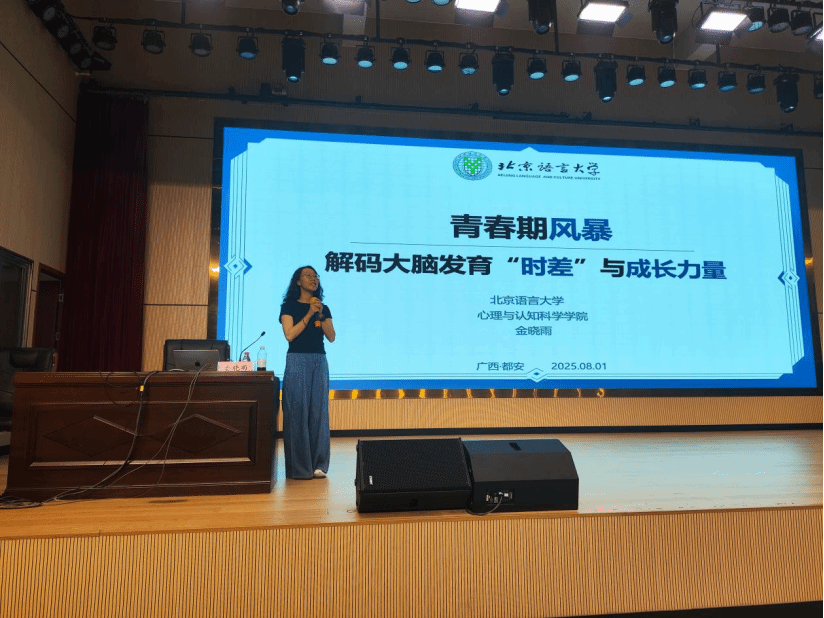 活动伊始,心理与认知科学学院金晓雨博士以“青春期风暴——解码大脑‘时差’与成长力量”为主题开展讲座。讲座中,金晓雨博士深入剖析了青春期情绪风暴与冲动行为的生理基础,以“大脑发育时差”为生动类比,帮助师生理解青少年特有的心理变化规律,为教师开展中小学教育提供了专业理论支撑,也让学生更清晰地认识自我成长阶段的特点与发展方向。参与讲座的教师们表示,这场讲座内容实用、案例鲜活,为日常教学中应对学生青春期问题提供了全新思路;同学们则认为,通过此次讲座,对自身所处阶段有了深刻的了解,也知道如何更好地管理情绪和规划学习。
