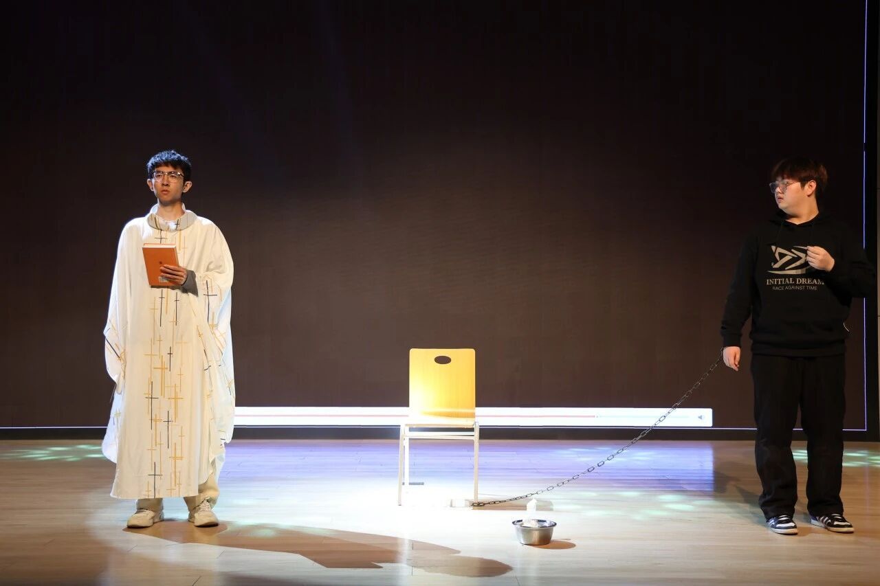 话剧《风声》改编自同名电影《风声》,同学们以出神入化的演技和丰富的道具,刻画了民国年代共产党人大义凛然和义无反顾的形象,表达了对革命先辈们的敬仰。