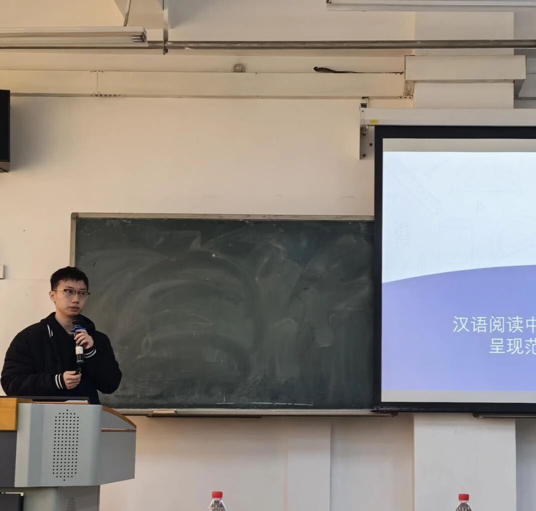 曾台燊同学在会上做了题为“汉语阅读中的语境预测性:快速视觉呈现范式与自然阅读的比较”的分组报告。该研究使用新兴的眼动-脑电联合追踪技术探讨汉语自然阅读中的语境预测性效应,发现快速视觉呈现范式和自然阅读对于语境预测性的不同影响,该研究促进了人们对汉语自然阅读中预测机制的理解。报告引发了在场师生的积极提问和热烈讨论。