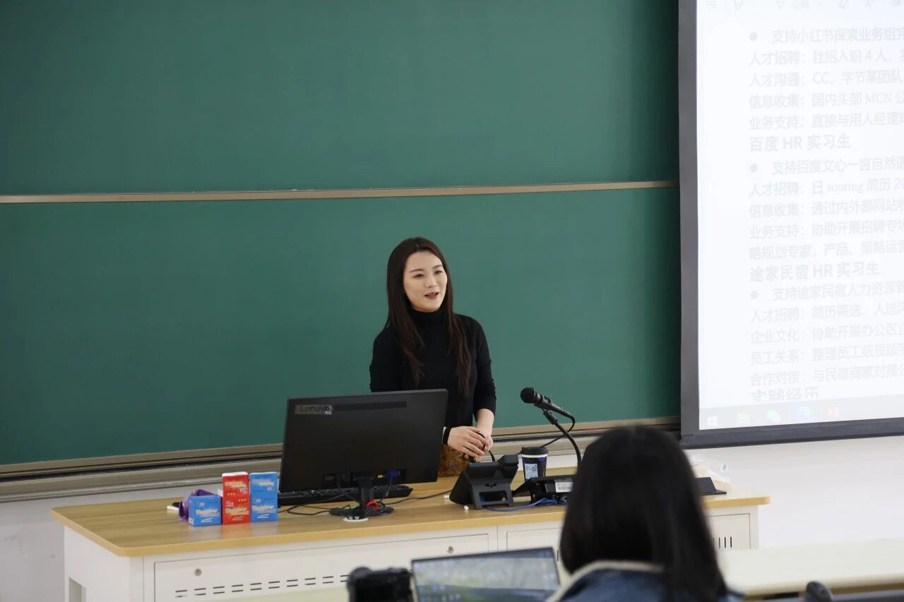 李杨老师对两位同学的经验分享进行总结,并诚恳地建议同学们要提前思考,将就业前置化,提前实习感受自己真正适合、真正想要的岗位,帮助同学们梳理求职理念,建议同学们可以尝试先就业后择业。