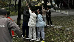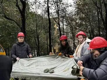 随着叉车缓缓升起,活动氛围迎来高潮。物业师傅操作叉车采摘高处的柿子,师生默契配合共同撑开布兜,稳稳接住抛下的果实——布兜起落间,接住的不仅是沉甸甸的丹柿,更是协作带来的成就感。
