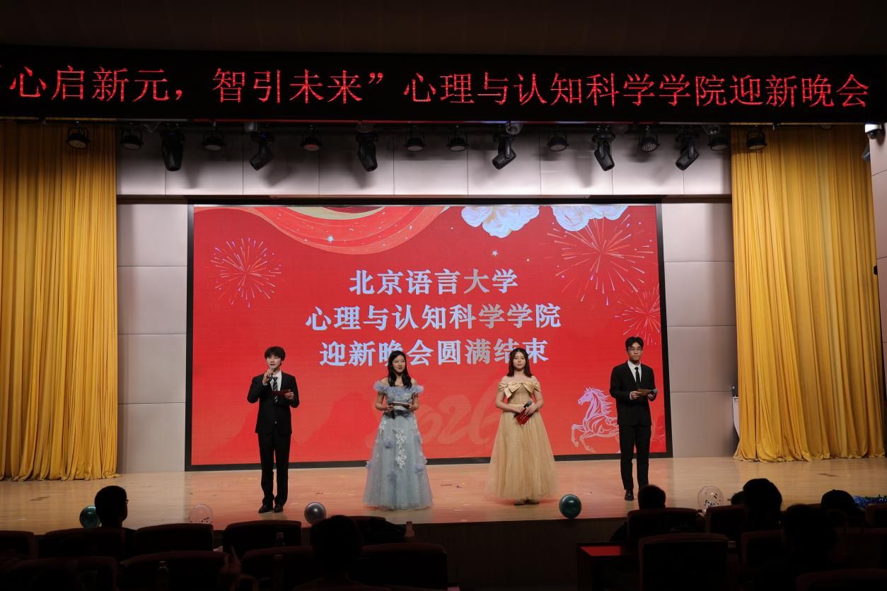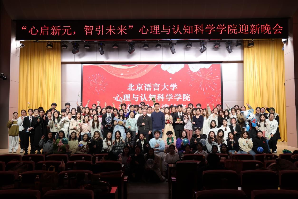 2025年12月4日晚,北京语言大学弘成报告厅灯火璀璨,暖意融融,心理与认知科学学院2025年迎新晚会在此隆重举行。本次晚会以“心启新元,智引未来”为主题,既凸显了心理与认知科学学院专业特色,又饱含全院师生的美好愿望,期许全院师生从心灵觉醒出发,以智慧为舵导航未来。学院党委书记王旭等学院领导和老师与全体同学们齐聚一堂,共享这场视听盛宴。