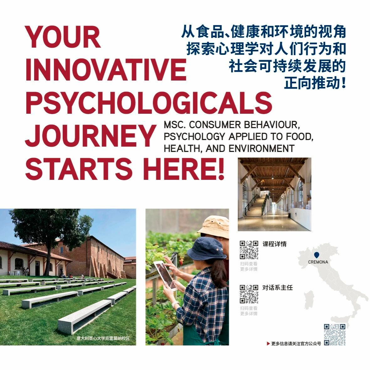 项目面向北语心理与认知科学学院本科心理学大三学生开放,学生可在满足语言条件的基础上,在大四直接赴意大利进入圣心大学克雷莫纳校区攻读英语授课研究生专业: