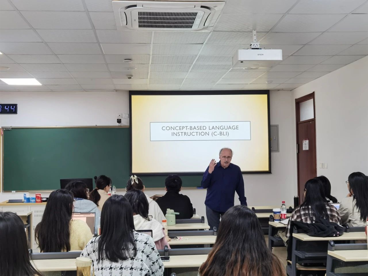 2024年10月16日,引智基地特聘教授、宾夕法尼亚大学荣休教授James Lantolf为师生讲授研究生国际课程的第三讲:《CONCEPT -BASED LANGUAGE INSTRUCTION (C-BLI)》,校内外三十余位师生参加课程学习。
