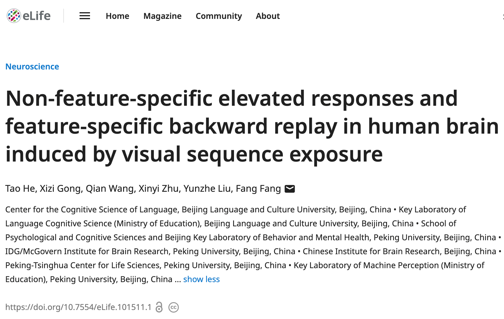 本文第一作者为北京语言大学语言认知科学学科创新引智基地何涛博士,通讯作者为北京大学心理与认知科学学院方方教授。北京大学心理与认知科学学院博士生龚曦紫、朱心亿、王茜副研究员以及北京脑科学和类脑研究中心柳昀哲研究员做出重要贡献。本研究获得了科技创新2030-重大项目(2022ZD0204802)、国家自然科学基金(31930053)、北京市自然科学基金(5244044)和教育部人文社会科学青年项目(23YJCZH071)等基金资助。