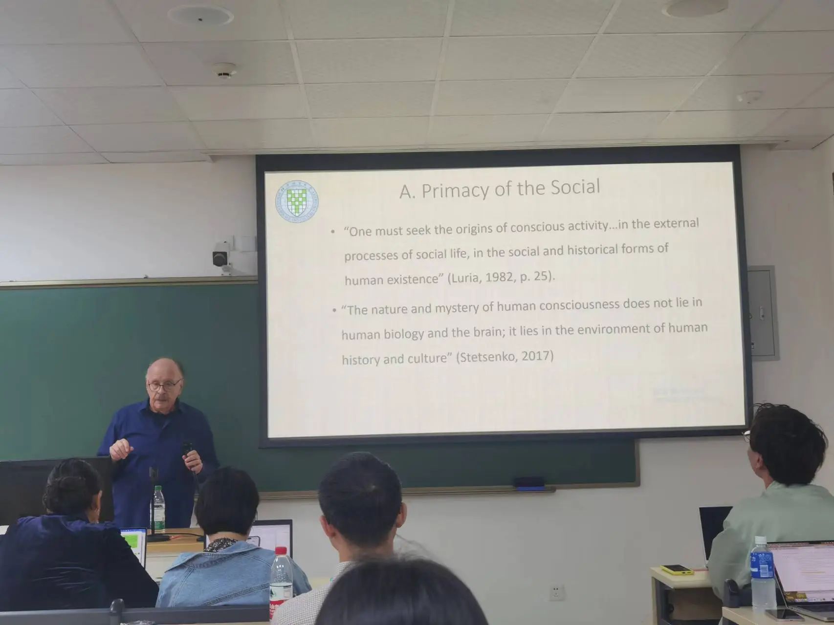 10月9日,James Lantolf教授主讲的研究生国际课程《Sociocultural Theory (Cultural-Historical Psychology)》第一次课开讲,校内外近三十位师生参加了课程学习,本次课上主要介绍了社会文化理论(SCT)。