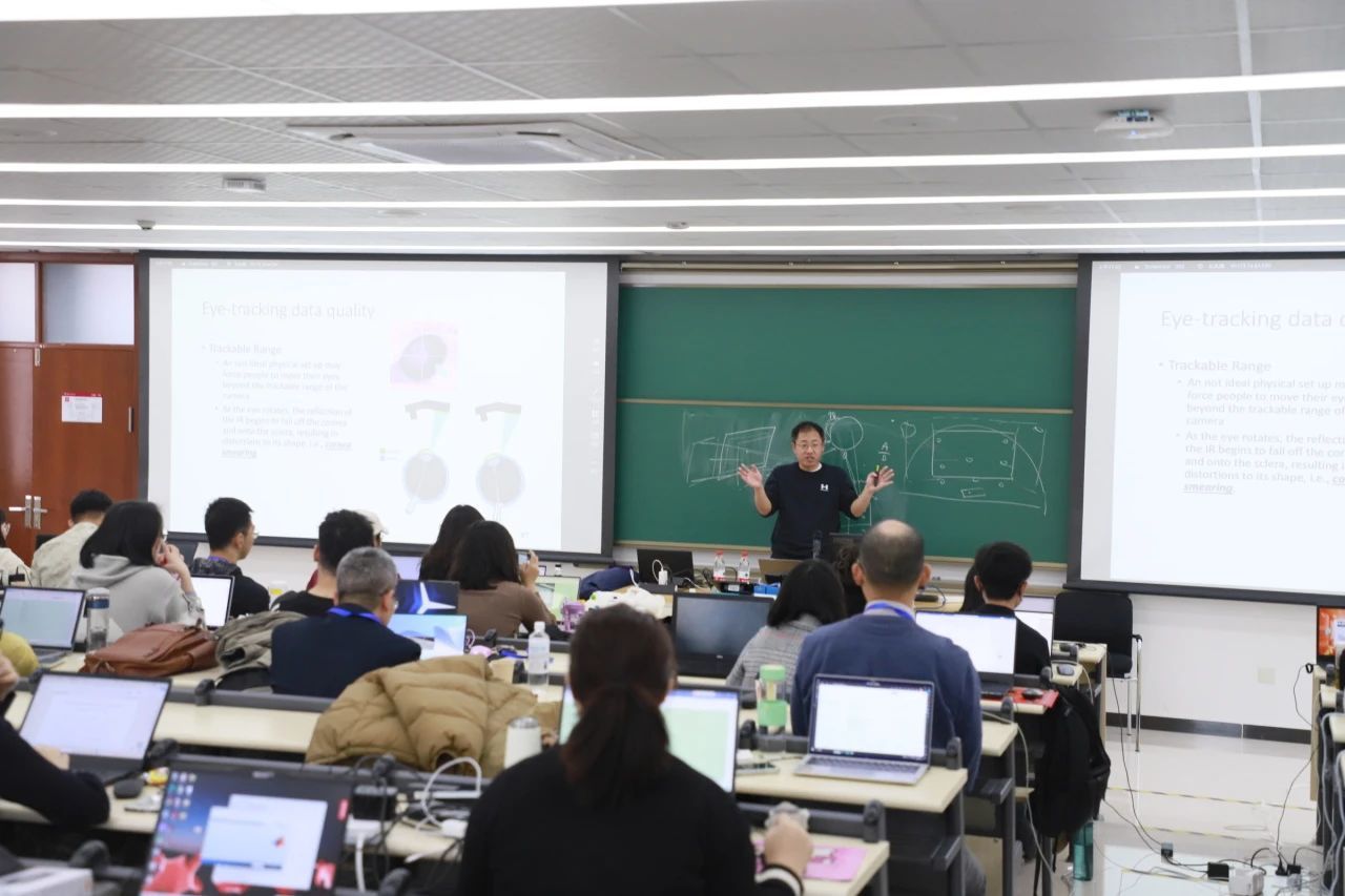 2023年11月25日,“中西学者语言认知科学前沿百家讲坛|语言认知科学研究与应用(第一期):眼动实验技术讲习班” 的技术培训模块开讲啦。技术培训模块为期两天,以提升学员实际操作和数据分析的能力,为他们提供专业的眼动追踪技术指导,以促进更广泛的研究展开。