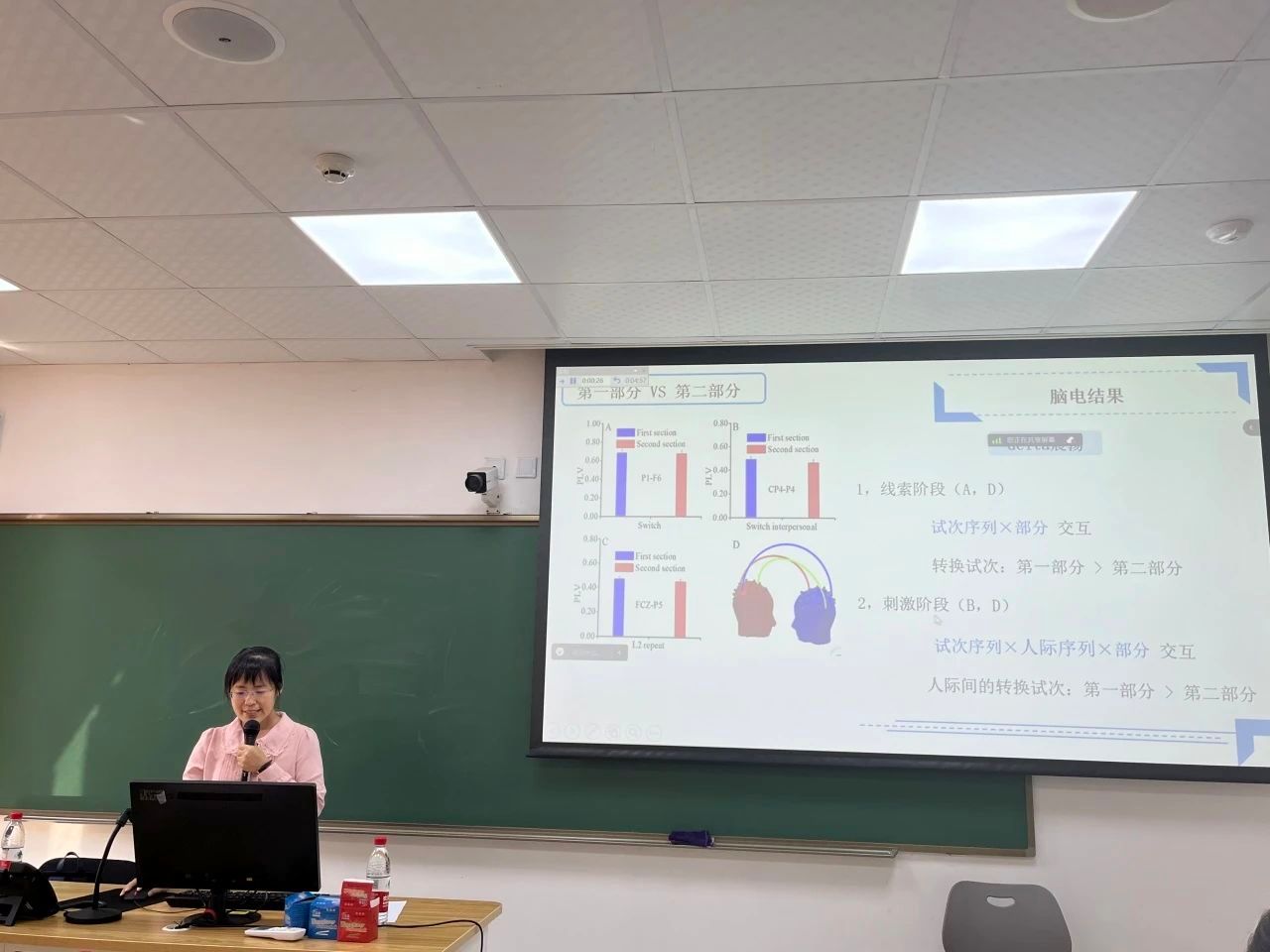 刘欢欢副教授的报告主要讲授了以下内容:第一,双语者的语言控制机制;第二,词汇构成规则对语言控制的影响;第三,语言转换的本质-来自情绪信号的假说;第四,利用强化学习的原理提高语言控制的神经机制。报告内容丰富而生动,引人入胜,为双语控制领域研究提供了新的思路。