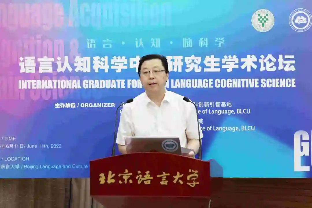 2022年6月11日,由北京语言大学语言认知科学学科创新引智基地、语言认知科学研究院主办的“语言认知科学中外研究生学术论坛”成功举办。来自海内外67所高校和研究机构的112位研究生以及参与大会报告点评的著名国际学者共聚云端,切磋学术,交流创见。北京语言大学校长刘利、研究生院院长郭鹏、校团委书记张晴、语言认知科学学科创新引智基地主任王建勤出席开幕式,开幕式由语言认知科学学科创新引智基地科研秘书任可歆主持。论坛采用线上ZOOM会议形式,通过B站直播平台进行现场直播。