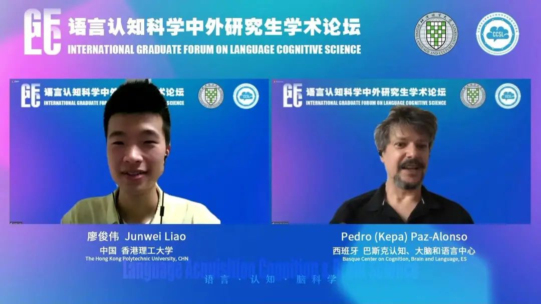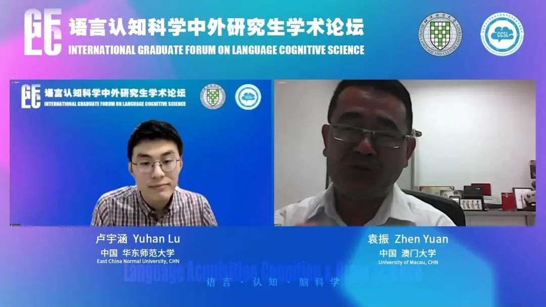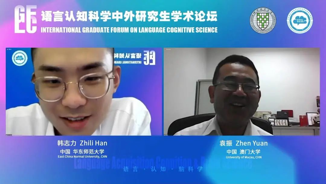 论坛共邀请6位国际知名专家做大会报告点评,他们分别是引智基地特聘教授、美国宾夕法尼亚州立大学James P. Lantolf,引智基地特聘教授、澳大利亚新南威尔士大学Marcus Taft,中国台湾“中”研院院士曾志朗教授,澳门大学认知与脑科学研究中心袁振教授,香港教育大学任演纳教授,西班牙巴斯克认知、大脑和语言中心Pedro(Kepa)Paz-Alonso教授。大会报告由北语语言认知科学学科创新引智基地博士生孙志君、郝元元主持,15位大会报告人围绕语言认知科学这一新兴交叉学科,就各自的研究内容做了精彩报告,研究问题前沿,充满青春锐气。国际专家对大会报告进行详尽点评,参会学者对报告内容进行提问和交流。专家点评精彩,线上互动踊跃,与会青年学者切身感受到学术思想的碰撞与科学研究的魅力。