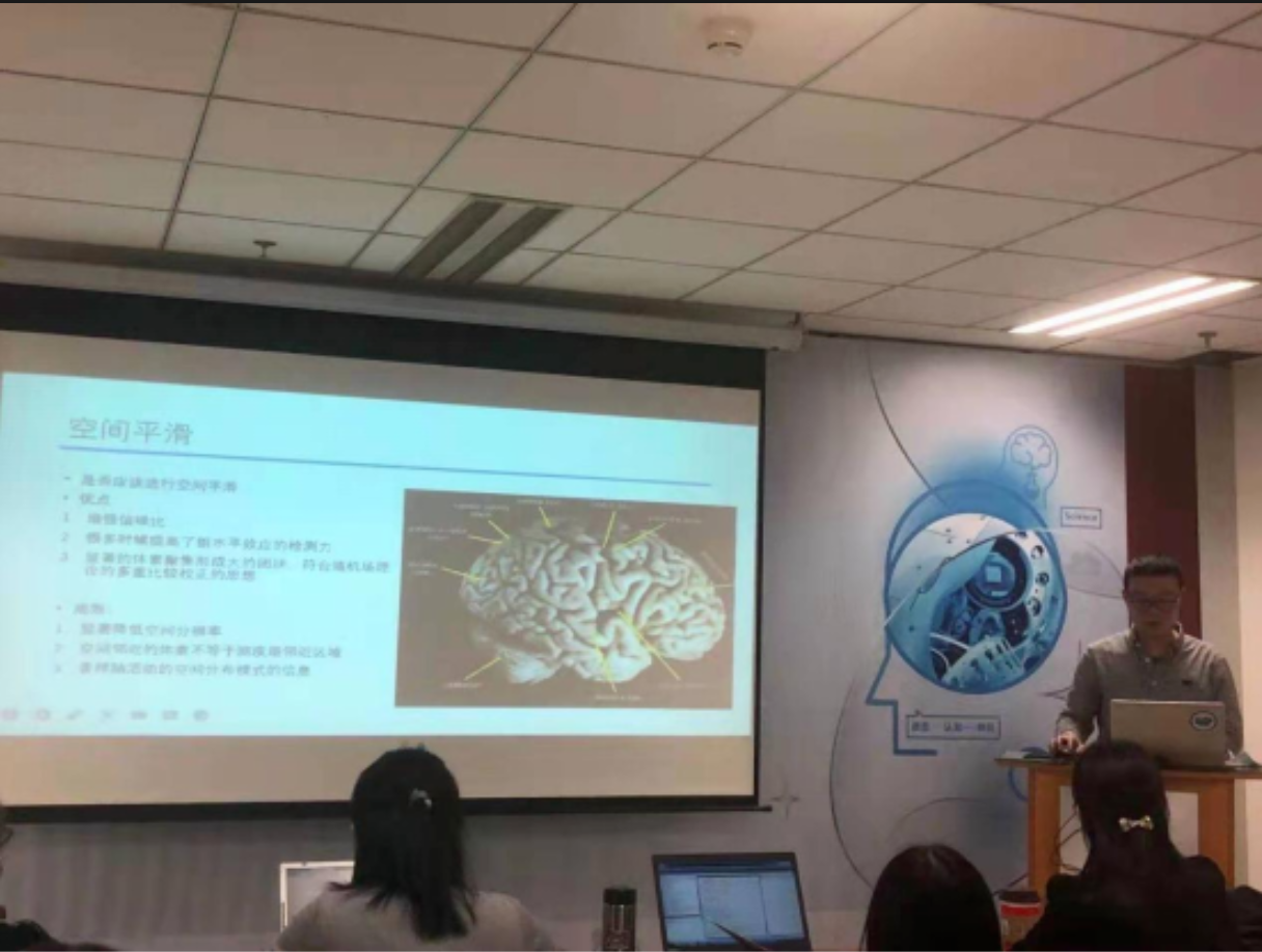 李乐博士重点讲解了功能磁共振成像(fMRI)数据分析中的相关概念和方法,主要从检查数据质量、数据预处理、个体水平分析和组水平统计分析四个方面展开。首先,李老师通过图示和举例详细讲解了如何检查数据质量以及数据预处理中不同操作的优点和局限性。接着结合不同的研究问题和实验设计,李乐老师具体讲解了个体水平分析和组水平统计分析的方法。在最后的问答环节,李老师全面解答了师生们提出的问题,与会师生表示收获颇多。