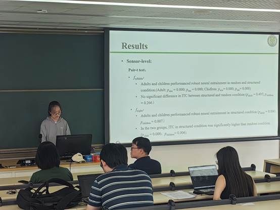 5月20日下午,Marcus Taft教授参加心理认知科学学院师生学术沙龙。本次学术沙龙由学院何涛副研究员主持,二十余位老师和同学参加。共有两位同学报告个人研究课题:第一位是硕士生郑一峰,汇报题目是“Serial allocation of visual attention during readin”,他利用眼动技术,探究了注意力累积过程对反应时间的影响。第二位硕士生张子鹤,她的汇报题目是“Linguistic Auditory Statistical Learning in Children Aged 4 to 8: An MEG Study”,她采用MEG(脑磁图)技术,研究了儿童和成人识别与记忆的不同模式。Taft教授就研究思路、实验范式和结果呈现等多个方面对两位同学的研究提出了建议和意见,与会老师也为两位同学提出了许多宝贵建议。