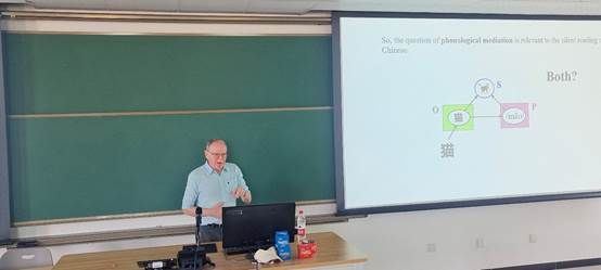 5月13日下午,Marcus Taft教授为心理与认知科学学院学生讲授第一节公开课。本节课程主要探讨了文字到语音的心理加工过程,特别是英语和汉语的不同处理方式。Taft教授聚焦正字法与语音的集中主要加工模型,探究了英语词缀和汉字部首对于词汇认知的不同机制,揭示了文字视觉阅读对于词汇加工的显著影响。他表示未来的研究将进一步探讨正字法与语音、语义的关系,研究复合词和复杂词汇的处理机制。