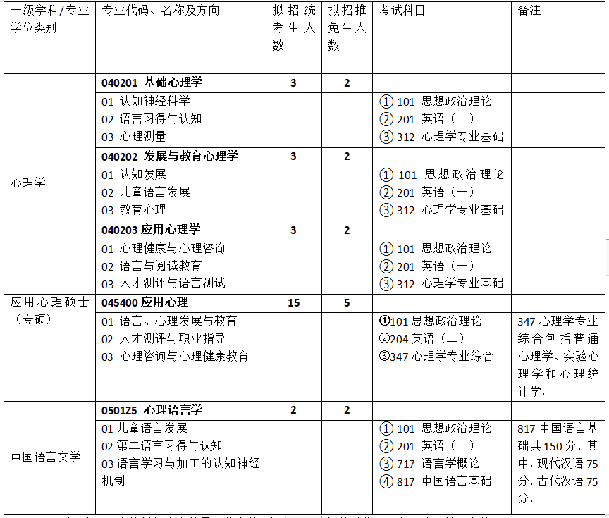 我校心理语言学专业(0501Z5)招收硕士、博士研究生(包括推免直博生),是我校在中国语言文学一级学科之下设立的二级学科。