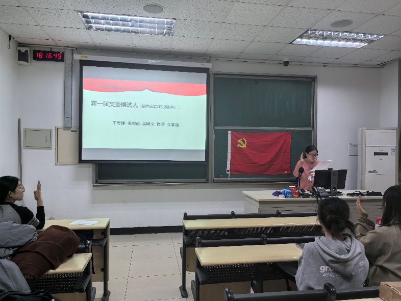 计票与宣布结果:投票结束后,监计票人员当场清点选票,确认收回选票数与发出选票数一致,选举有效。随后大会进入短暂休会,计票人在监票人的监督下进行集中计票。复会后,监票人向大会报告计票结果,主持人李新蕾同志当场宣读选举结果:肖芝同志,张景瑜同志,吴晓文同志,王若婷同志当选新一届党支部委员会成员。
