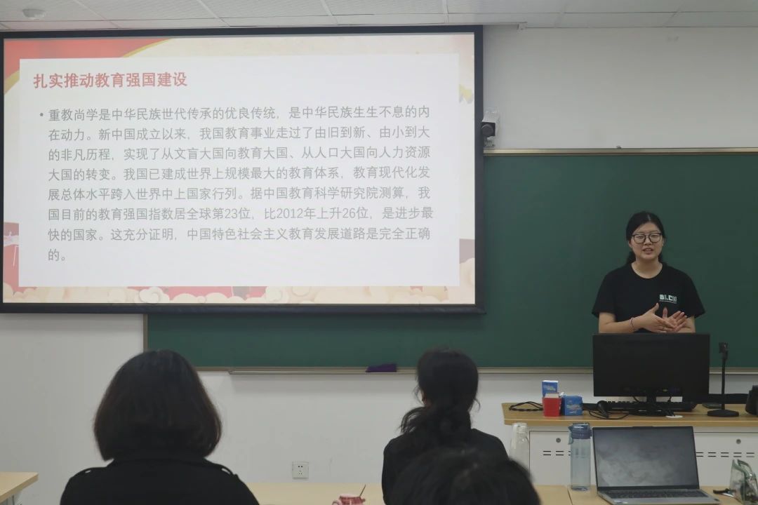 同学们一起学习了未来我国将建设什么样的教育强国,怎么建设教育强国这一重大课题。据中国教育科学研究院测算,我国目前的教育强国指数居全球第23位,比2012年上升26位,是进步最快的国家。这充分证明,中国特色社会主义教育发展道路是完全正确的。