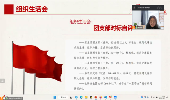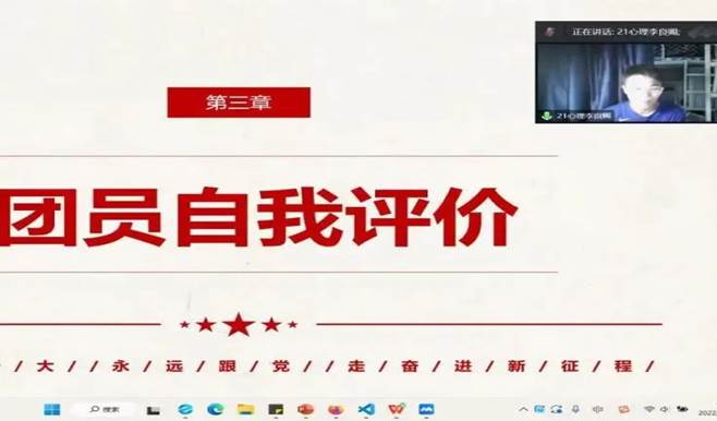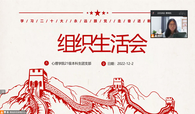 2022-2023学年第一学期即将结束,心理学院21级本科生团支部于2022年12月2日开展了组织生活会,总结了这一学期团支部的基本情况。