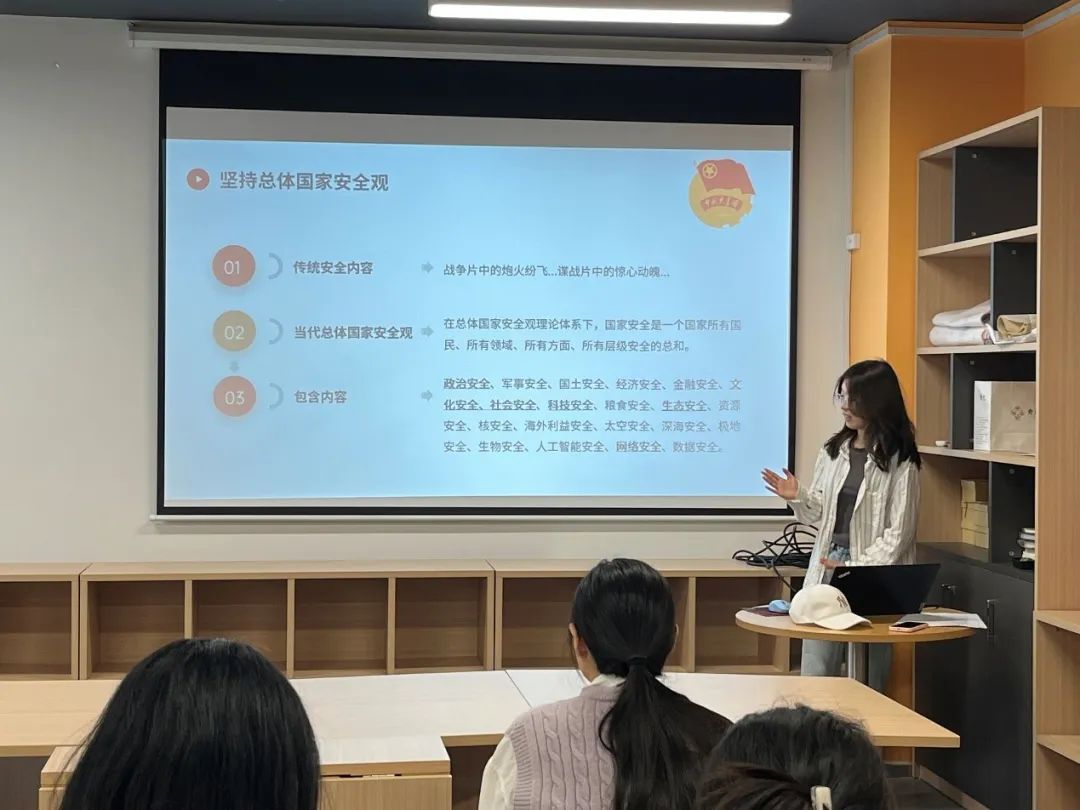活动伊始,团支书童钰佳同学介绍了全民国家安全教育日的背景意义,并梳理了考研政治中“总体国家安全观”“国家安全战略”等核心考点。学习委员结合历年真题,通过互动问答帮助同学们深化理解。